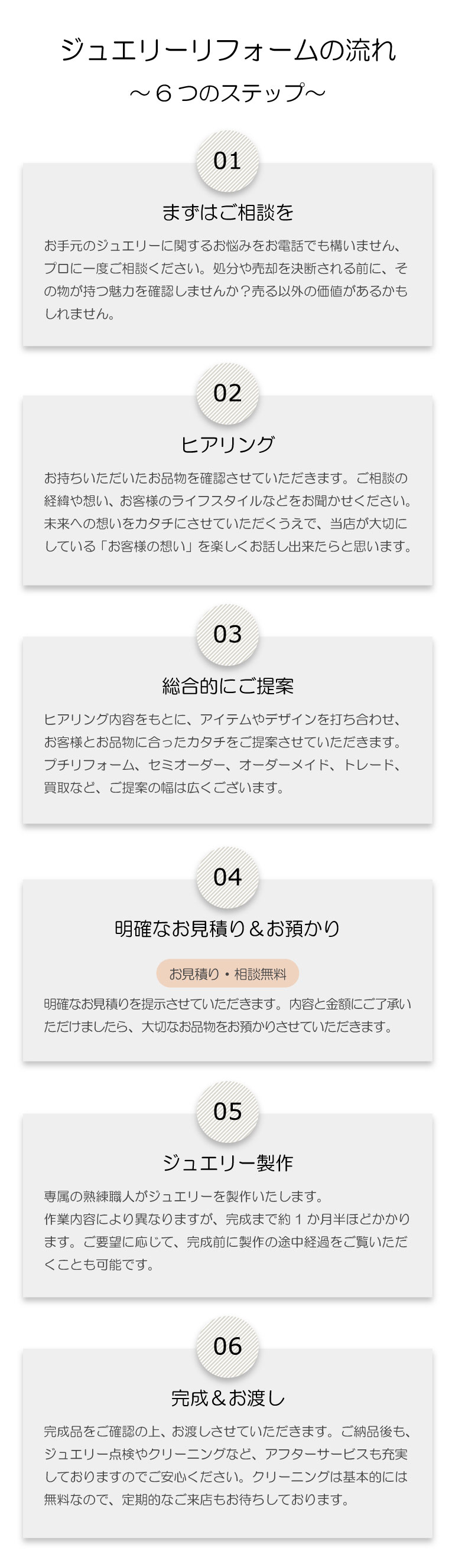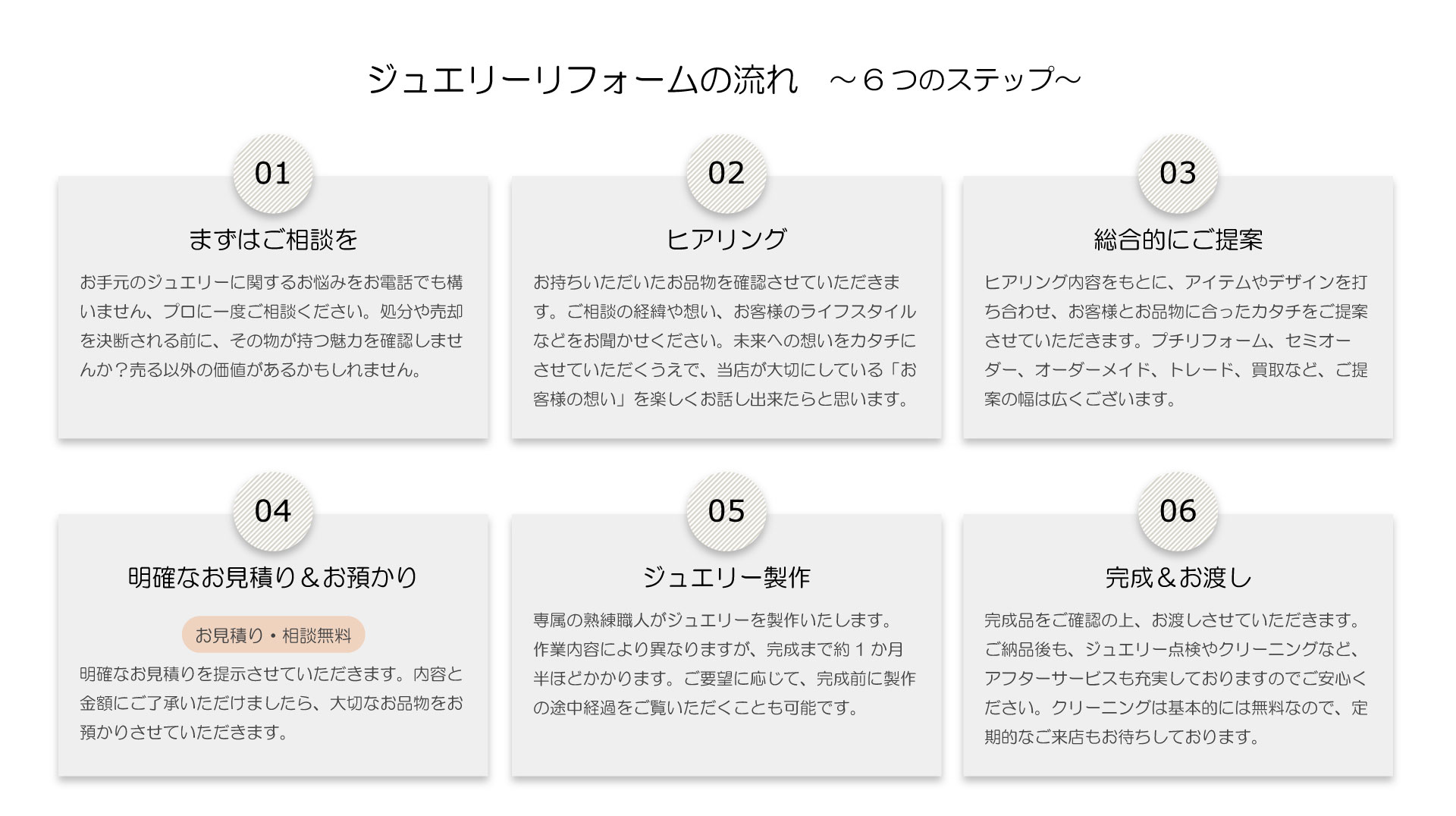 想い出の詰まったジュエリーを長くご愛用して頂くために、ルシルケイでは、リフォームしたジュエリーのサイズ直しはサービスで承っております。